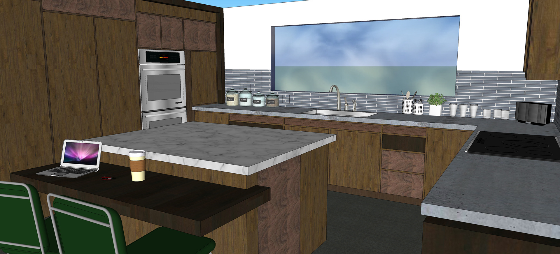 Below are original images and 3D models of our Mid Century Modern home. I create highly detailed plans in order to prevent any miscommunications in our custom, interior designs.